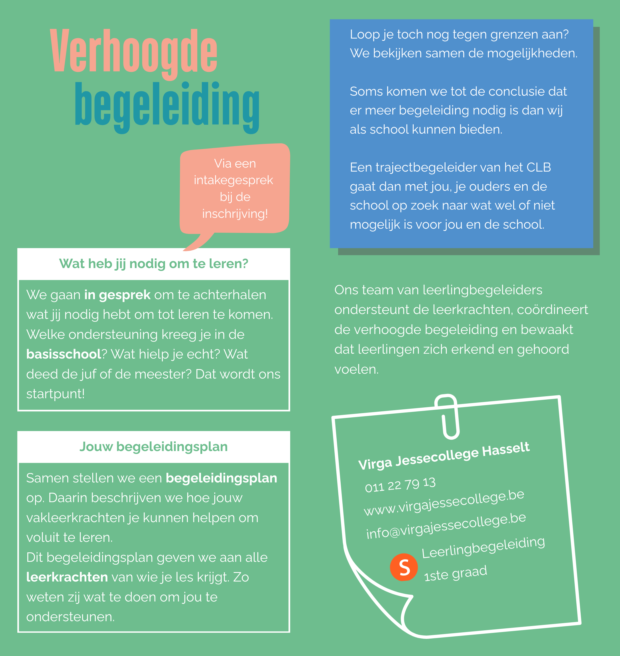 Individuele begeleiding van leerlingen: studiebegeleiding, coachgesprekken, leeruitdagingen, ontwikkelingsstoornissen, opvolging via individuele begeleidingsplannen. |